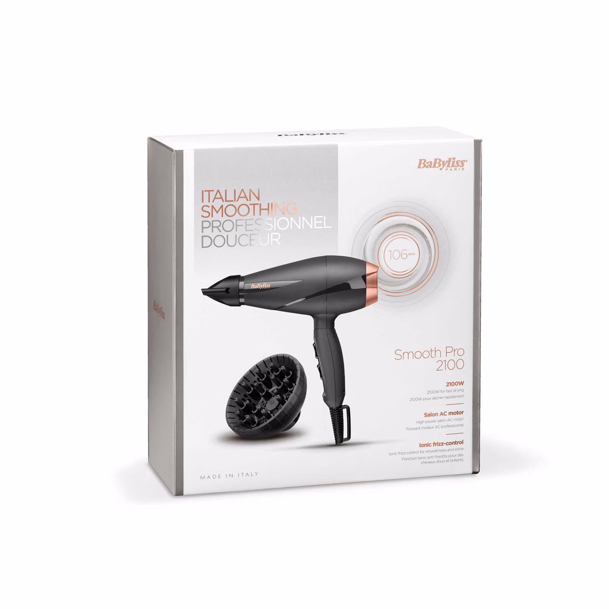 AC profimootor. Ioonhooldus. 2 kiiruse / 2 temperatuuri astet, jahe õhk. Kitsas õhusuunaja otsik: 6 mm. Difuuser. Eemaldatav filter. Riputusaas. Valmistatud Itaalias
