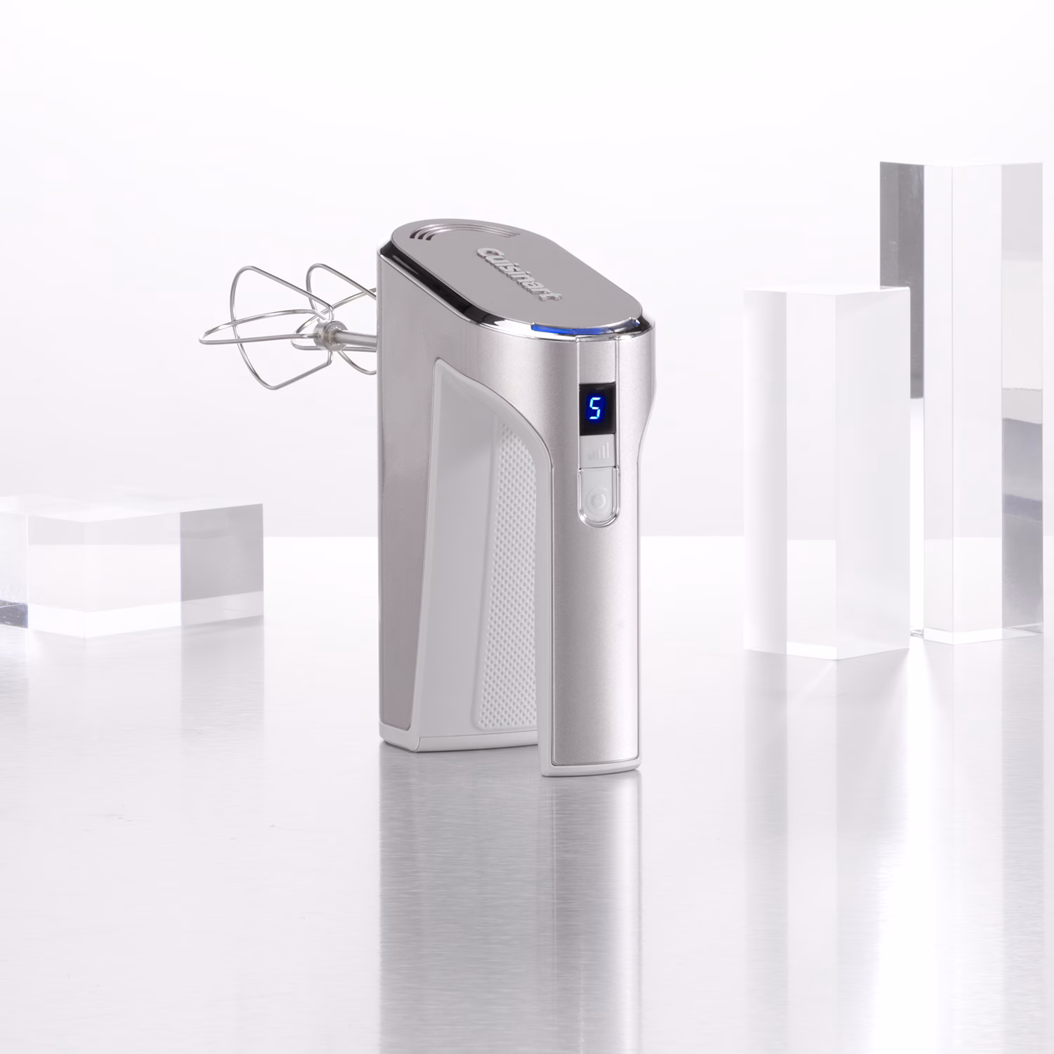 Käsimikser juhtmeta kasutusega. Kompaktne suurus hõlpsaks käsitsemiseks ja ladustamiseks. Saab asetada vertikaalselt tööpinnale. Kergesti puhastatavad roostevabast terasest visplid. 5 kiiruse seadet. 130 minutit täislaadimist umbes 20-minutise pideva kasutamise korral. Liitiumioonaku püsiva ja suure võimsuse tagamiseks. Aku märgutuli, mis näitab laetuse taset. USB-kaabel ja adapter optimaalseks laadimiseks