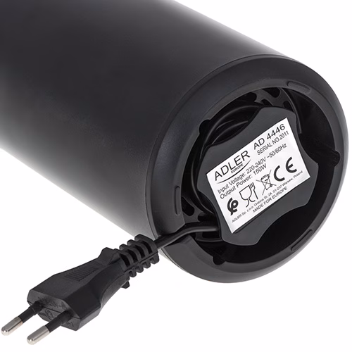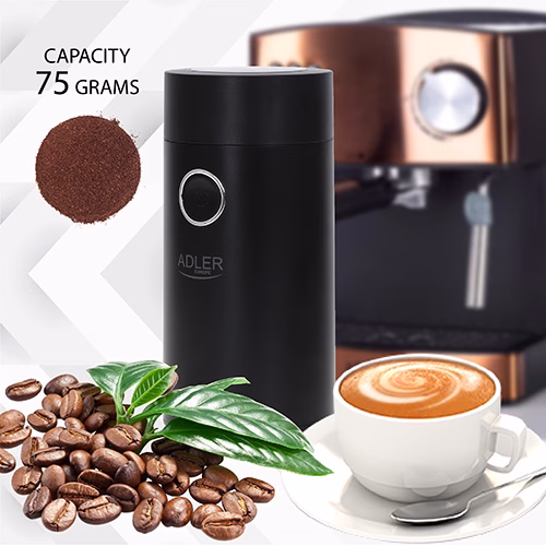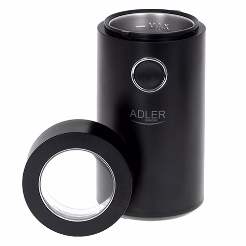 Läbipaistev kaas. Turvalukk. Kiire sisse/välja lülitamine. Lihtsalt kokkupandav kaabel. Mahutavus: kuni 75g. Metallist kohvianum. Toote mõõdud: 9,6 x 9,6 x 19,6 cm. Korpuse materjal: plastik. Värv: must