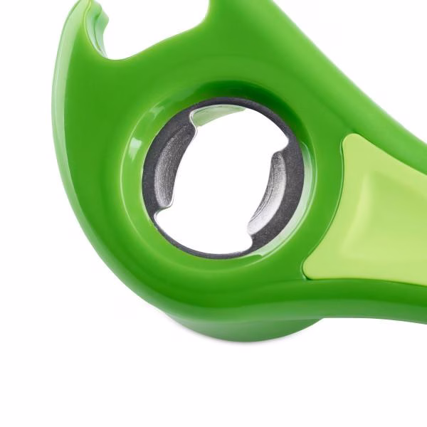 Multifunktsionaalne avaja: plast- ja metallist keeratavate korkide, metallist pudelikorkide, pop-topide ja purgikaante avamiseks. Pehme mugav ergonoomiline käepide. Nõudepesumasinas pestav