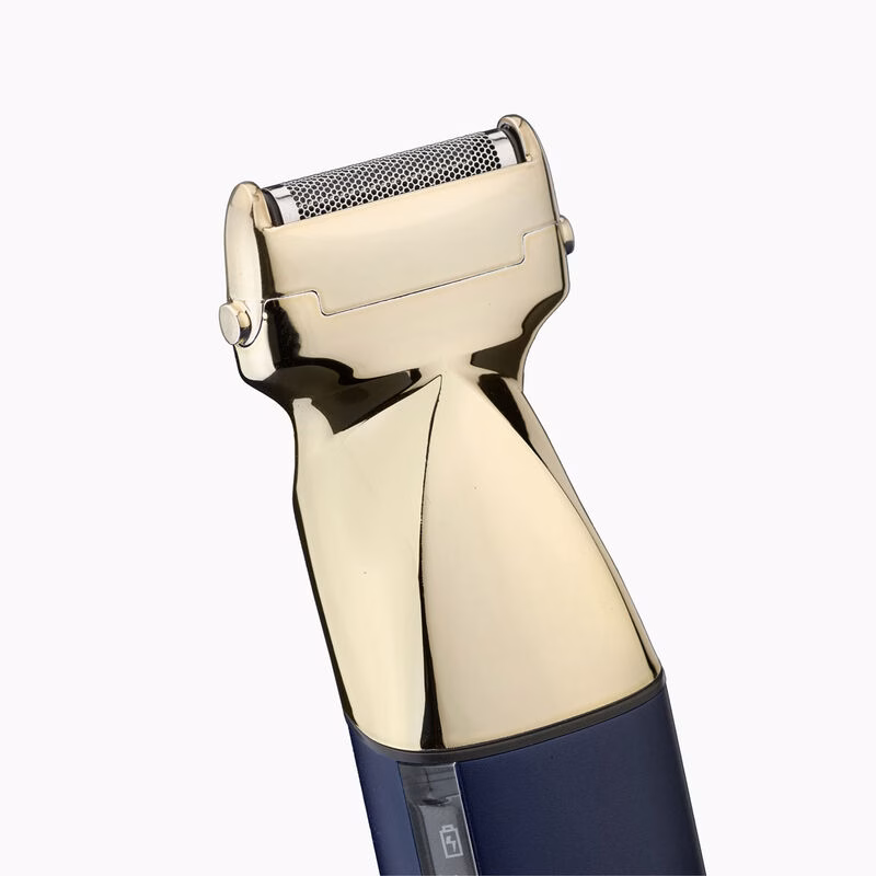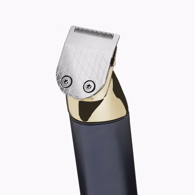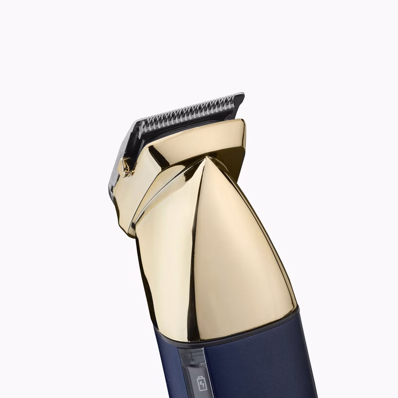 Trimmeri komplekt 15 in 1 Super X Metal Gold & Navy. Jaapani roostevabast terasest valmistatud täpsed terad sujuvaks lõikamiseks. Liitiumioonaku pikaajaliseks juhtmevabaks toimimiseks. Kuni 5-tundi juhtmevaba kasutamist või 20-minutilise kiirlaadimisega kuni 40-minutit. Tugev metallist käepide. 100% veekindel. 4 vahetatavat magnetkinnitusega lõikepead. Juukselõikusmasin. Habeme ja keha trimmer. Täppis pardel. Nina-kõrva trimmer. 4 habemekammi 5, 6, 7 ja 8 mm. 3 juuksekammi 9, 12 ja 16 mm. 2 kehakammi 3 ja 4 mm. 2 kulmukammi 3 ja 4 mm. Digitaalnäidik, mis näitab laadimise edenemist ja aku jääklaetust. 10 kammijuhikut 0,5-8 (lõikepikkused 0,8-25 mm) ja juhikud kummagi kõrvaäärse juuksepiiri jaoks komplektis. Kõva reisivutlar